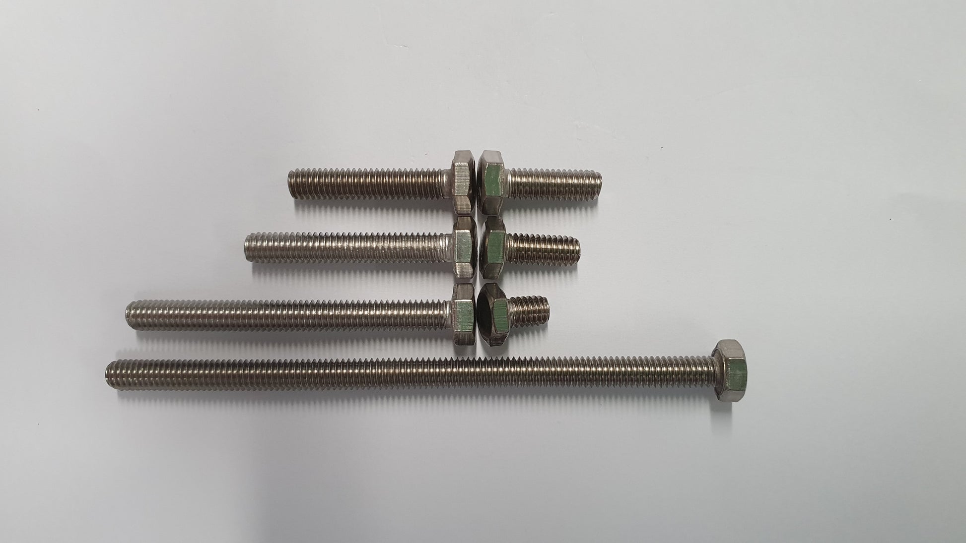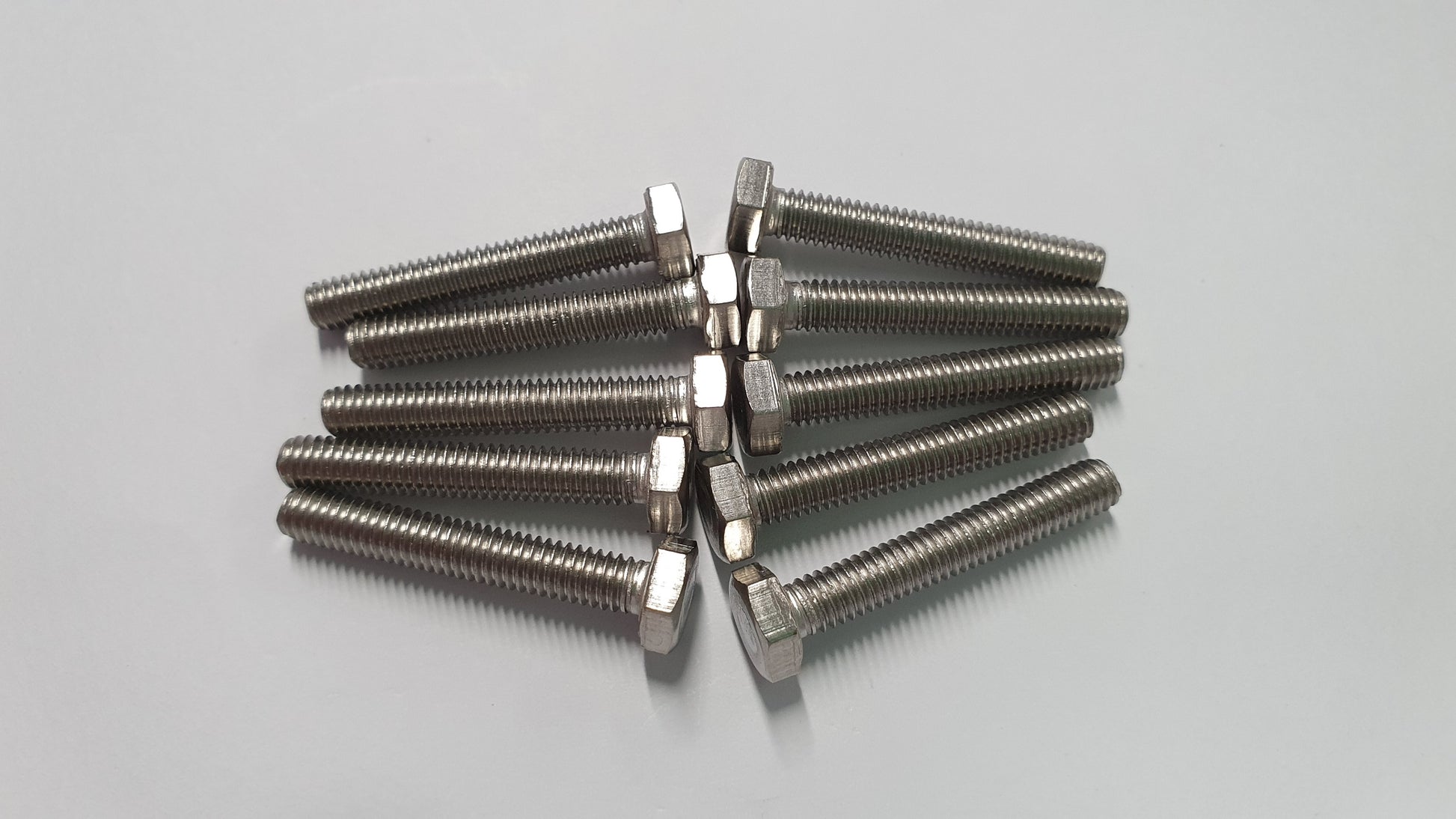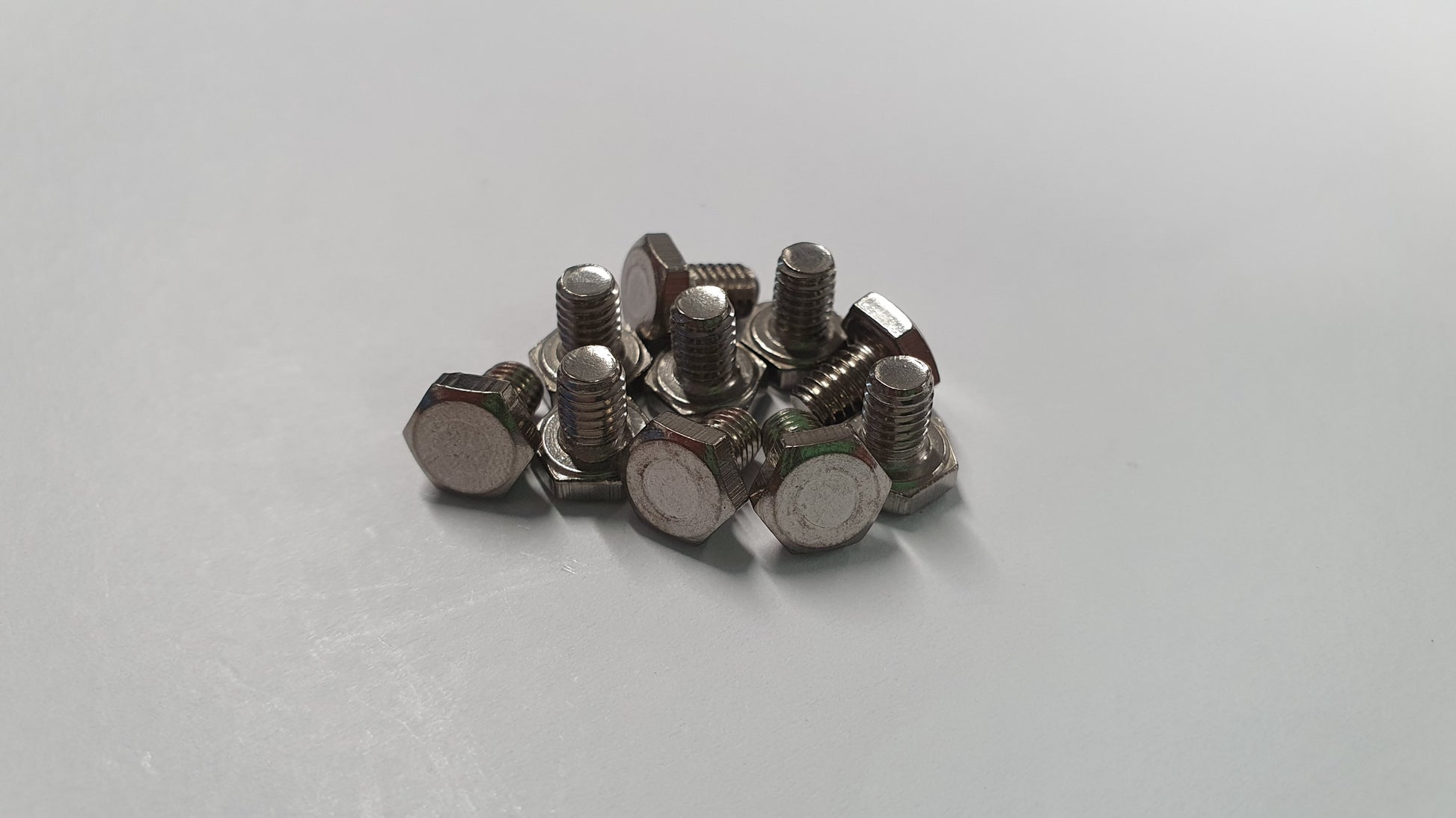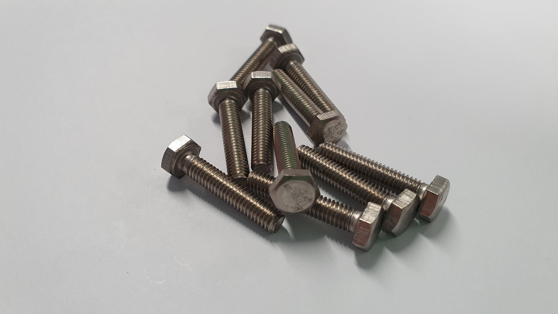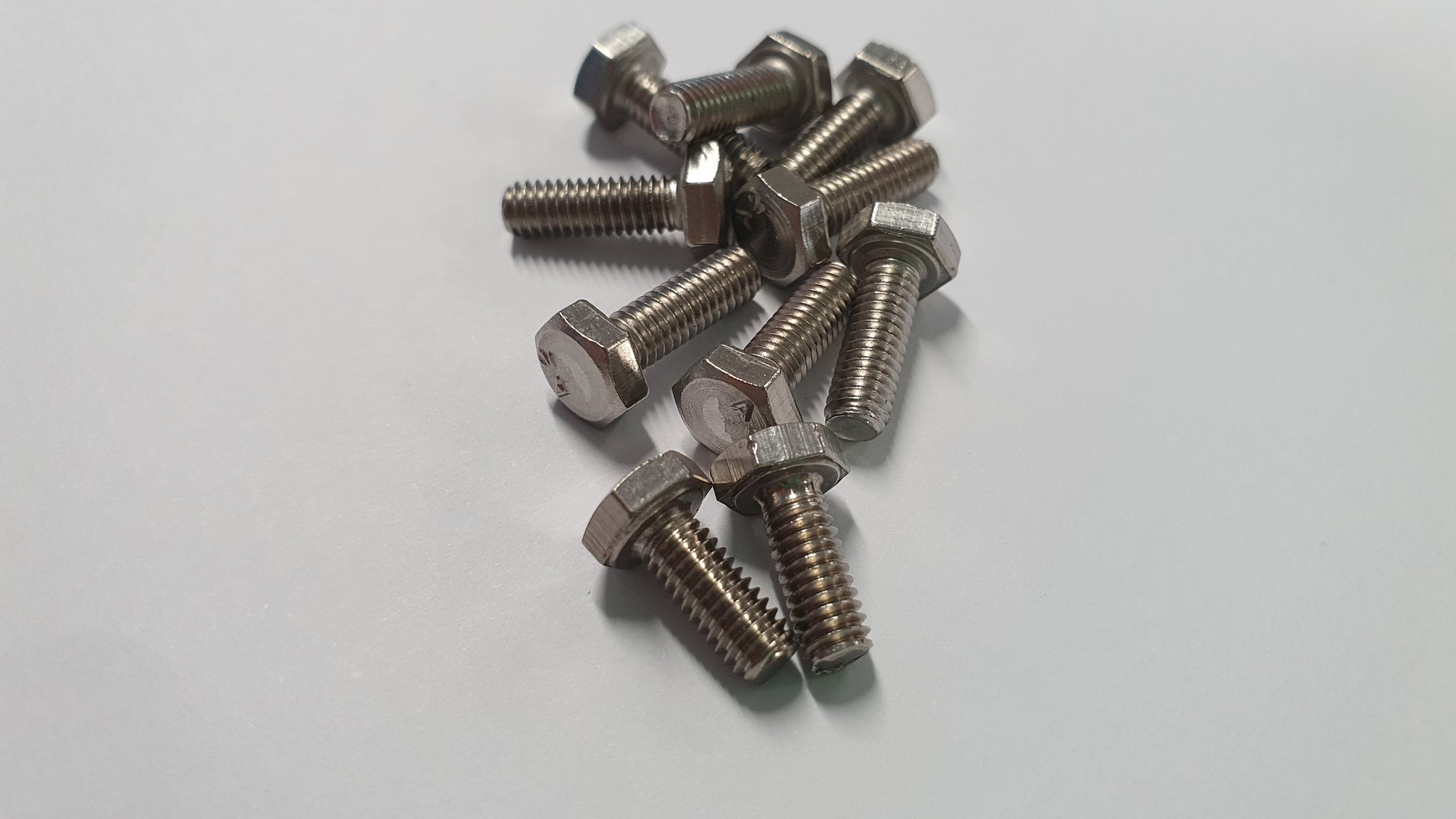 Metric M4 hex head bolts with 0.7mm thread pitch. Head is 7mm across flats.