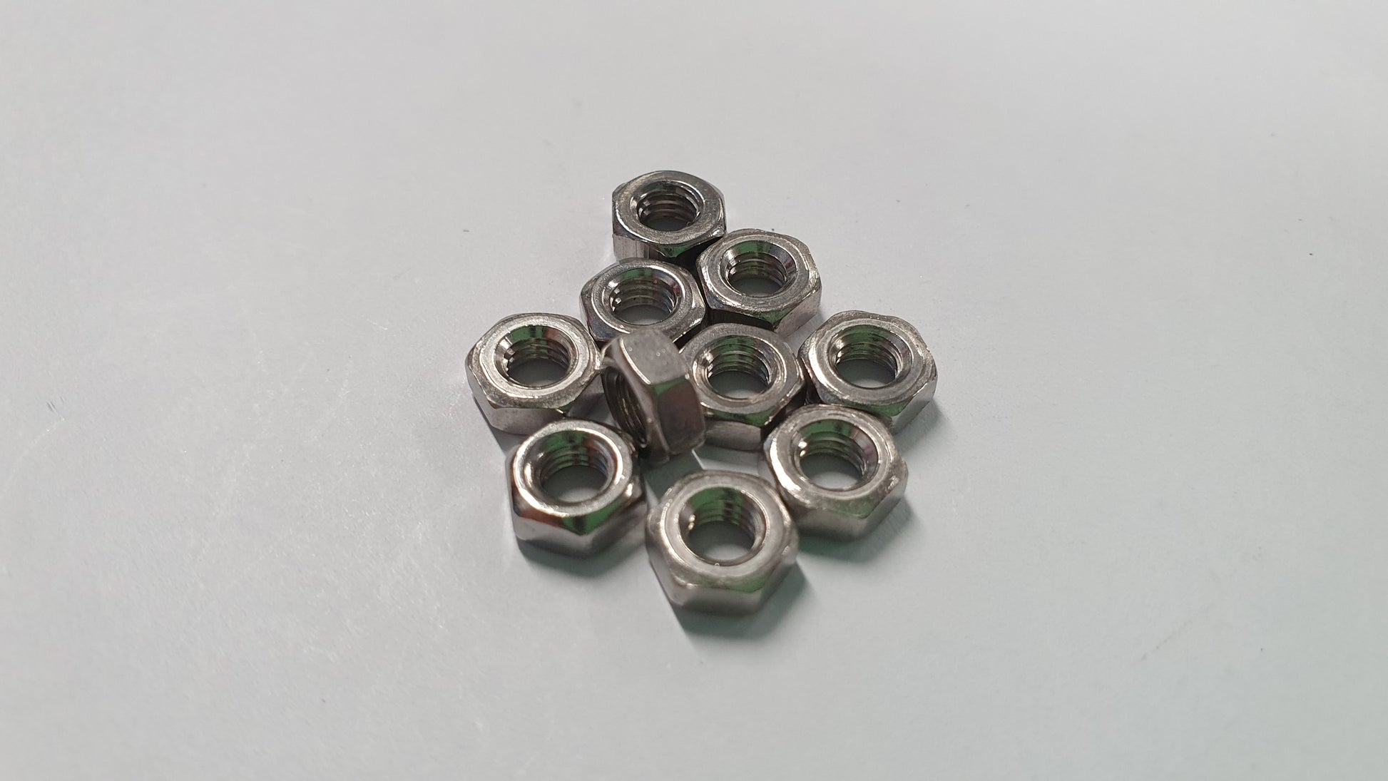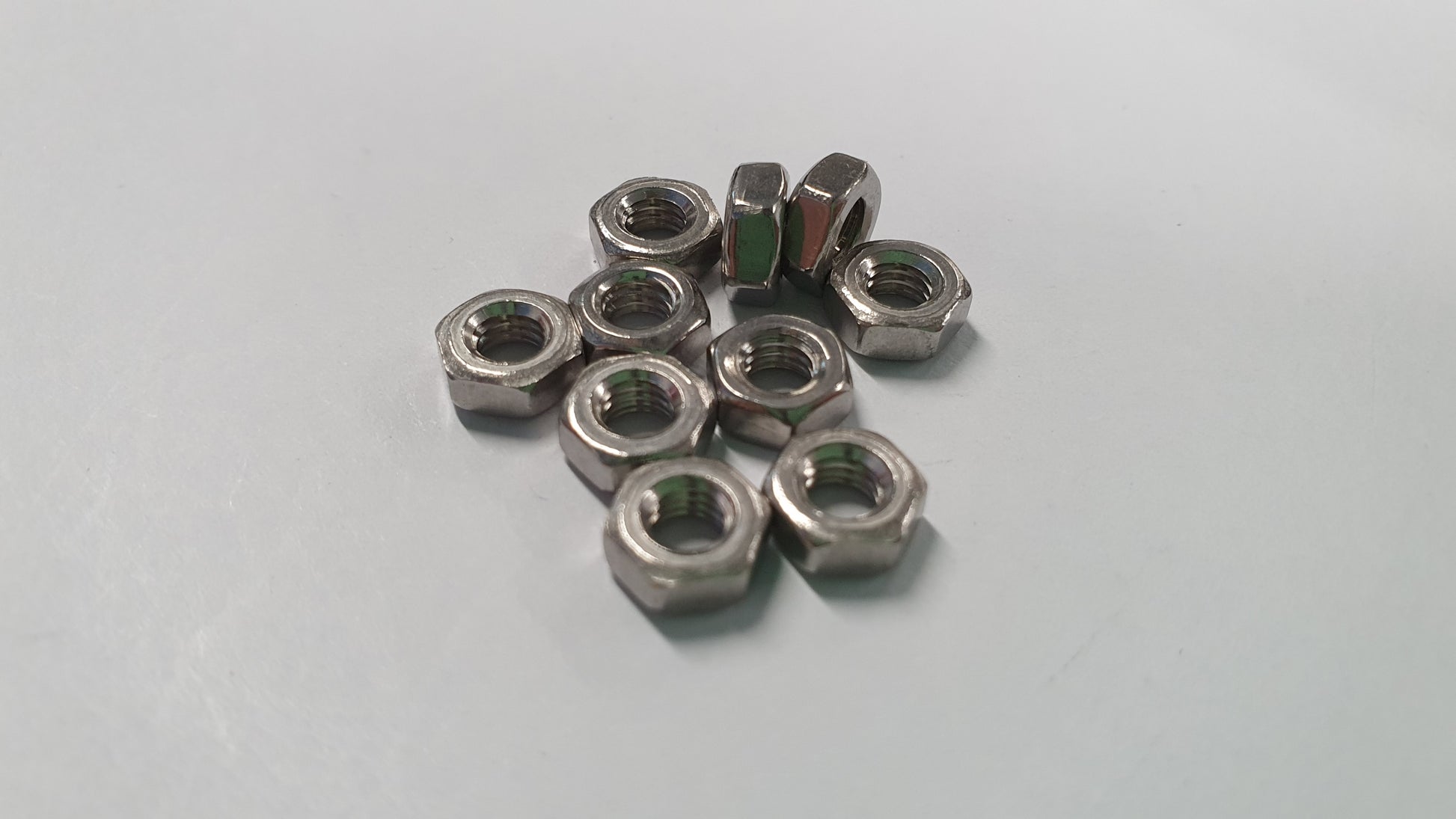 Metric M4 hexagonal full nuts with 0.7mm thread pitch. Head is 7mm across flats.