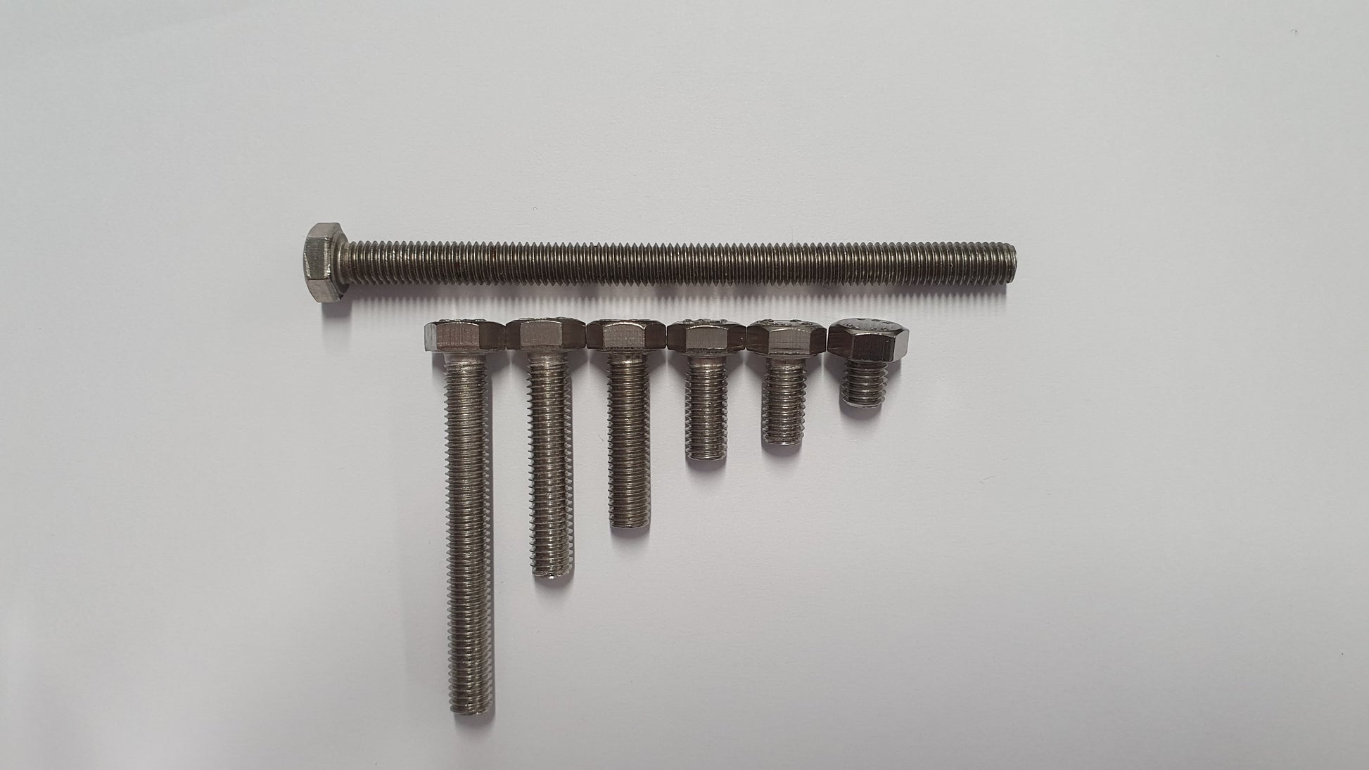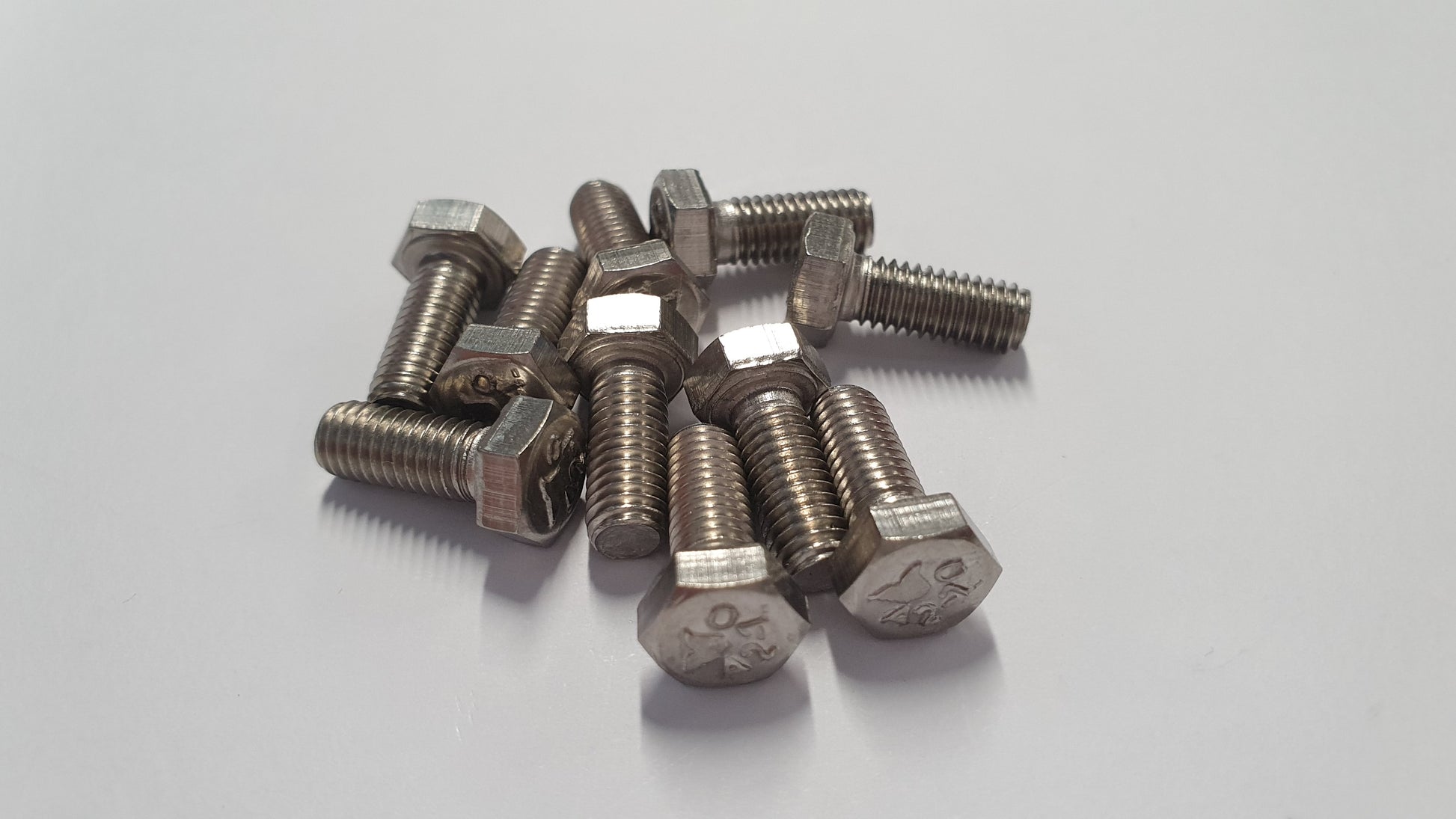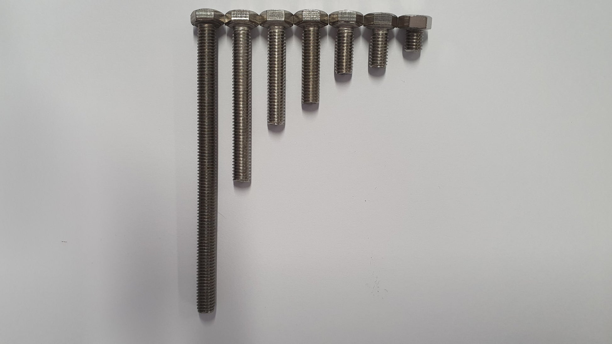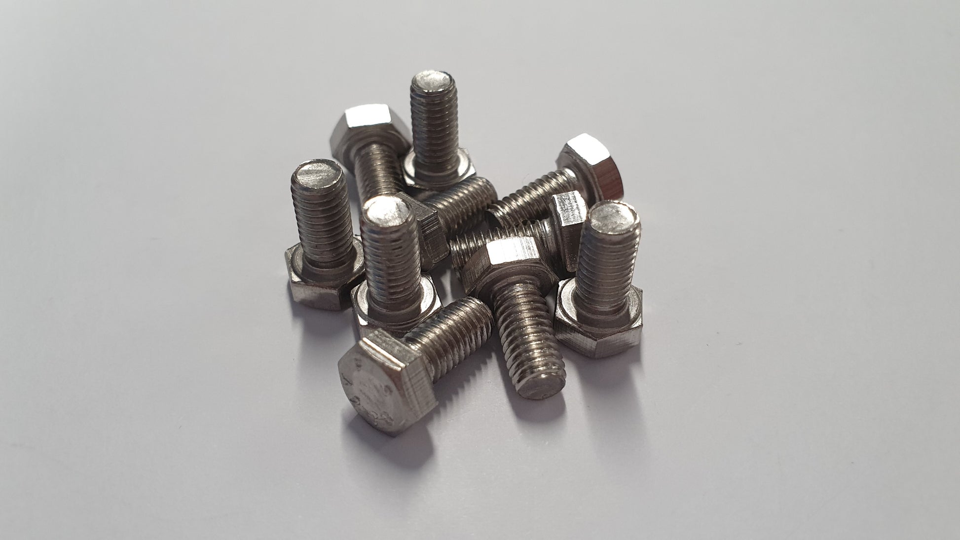 Metric M5 hex head bolts with 0.8mm thread pitch. Head is 8mm across flats.