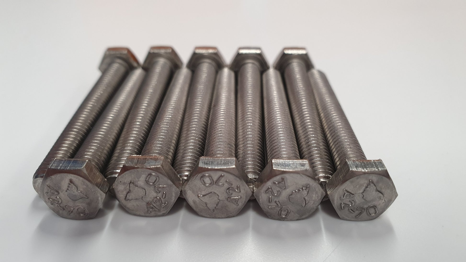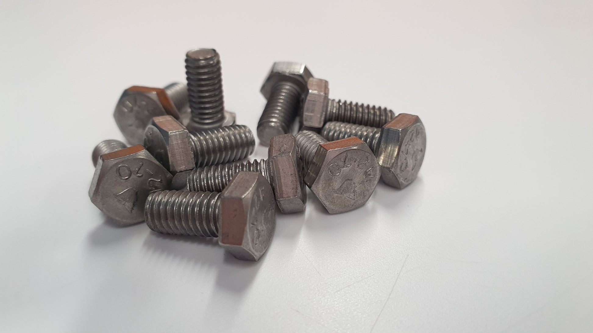 Metric M6 hex head bolts with 1.0mm thread pitch. Head is 10mm across flats.